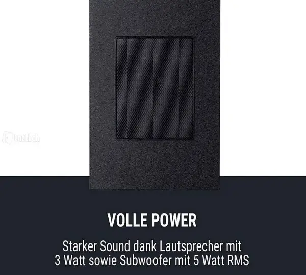 PC gestreamt und über den leistungsstarken Lautsprecher mit 3 Watt sowie den Subwoofer mit 5 Watt RMS wiedergegeben werden.