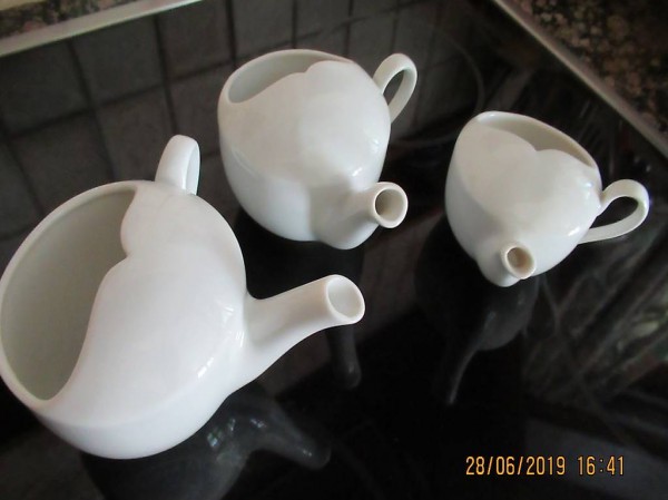 Langenthal, 1 mal 1,5 dl, von 1952 wurde verkauft, 1 mal 2 dl von 1937, 1 mal 2,5 dl von 1957 alle in neuwertigem Zustand, weiss und Spülmaschinen tauglich, ideal für Patienten, alte Leute , kranke, bettlägerige, für kalte und heisse Getränke, kann auch im Liegen gebraucht werden