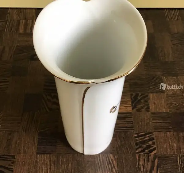 ... spezieller Form, Goldrand und edlem Blumenmotiv gold/schwarz. Porcelanas del Ampurdan,