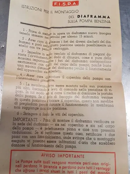 Kit per revisione pompe alimentatrici benzina.