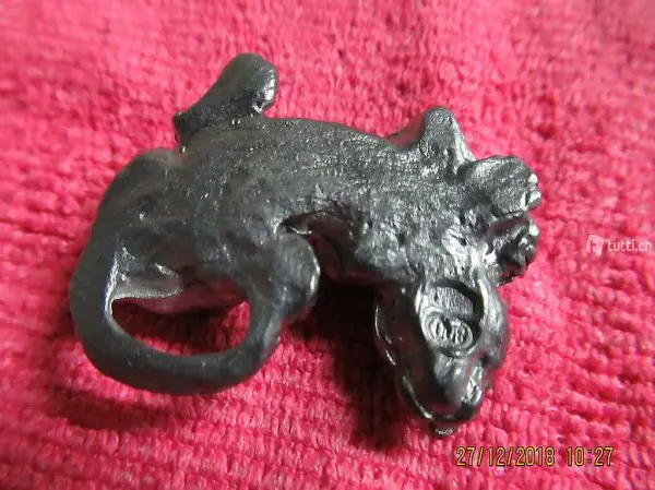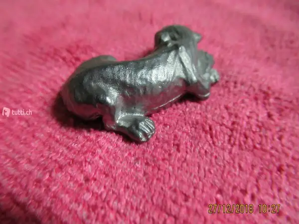 Katze liegend, Grösse 3,5 cm, Setzkastenfigur, Puppenstuben Zubehör, mit Punze, leider kann ich die Punze nicht genau entziffern,