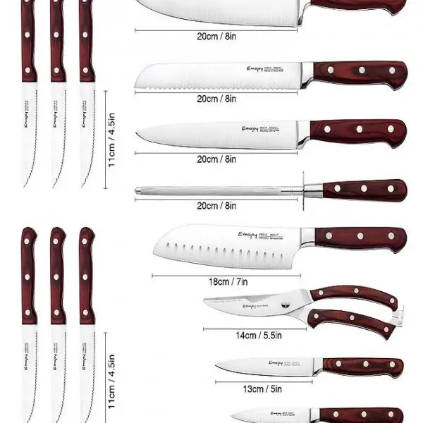 Messer, 5" Mehrzweckmesser, 3.5" Schälmesserund, 6x4,5" Steakmesser, 8" Wetzstahl, 5.5"
