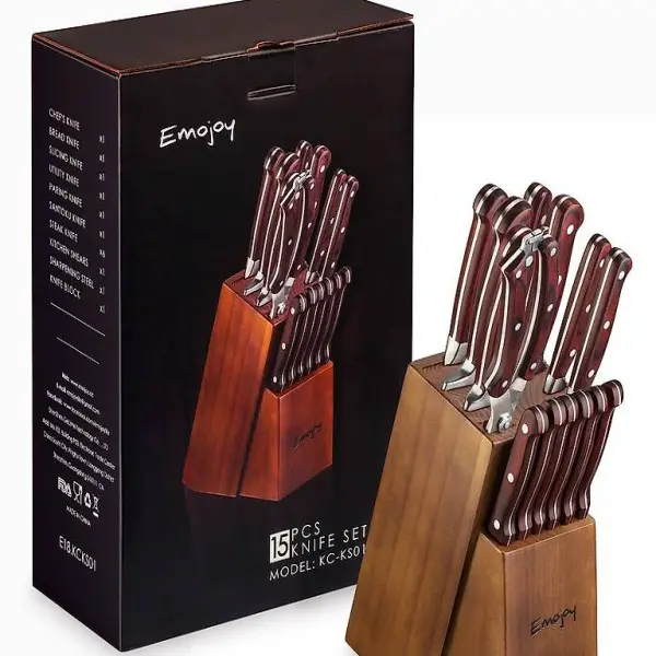 Feststehend Holzblock, inkl. Wetzstahl, 15-teilig, Braun