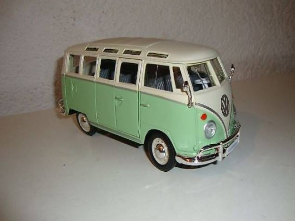 Bus Samba aus Metall im Masstab 1:25 zum verkauf an. Die Einstiegstüren seitlich ein Teil des Dach und der