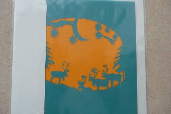Sechs Karten mit Rentieren und Umschlag
