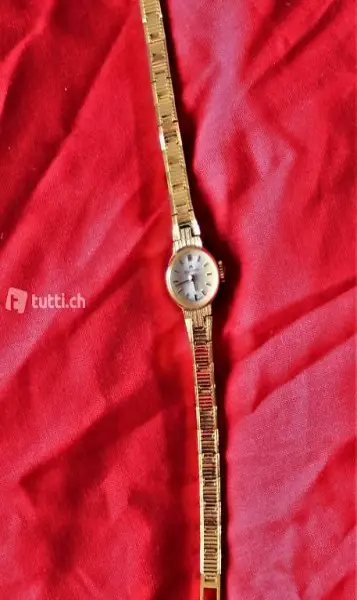 Bucherer -klassische Damenarmbanduhr, vergold., Stahlarmband