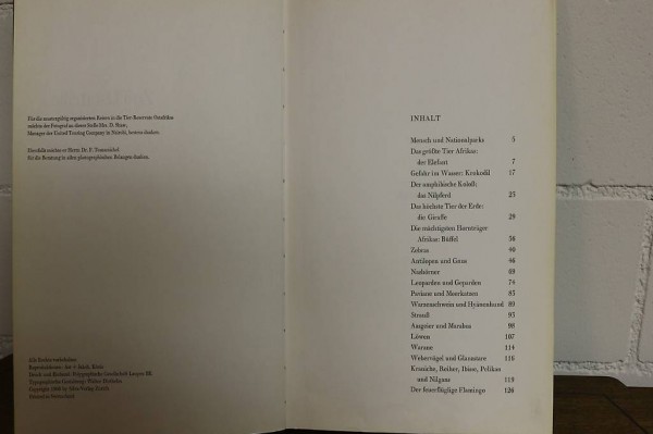 Ueber 120 Seiten wissenswertes über Tiere in Ostafrika, mit vielen, eingeklebten Bildern. Preis exkl. Porto. Kann nach Absprache auch in Bauma, Baar oder Obfelden abgeholt werden. Der Erlös geht zu Gunsten von Motorrad-Seitenwagen-Ausfahrten mit Kinderheimen.