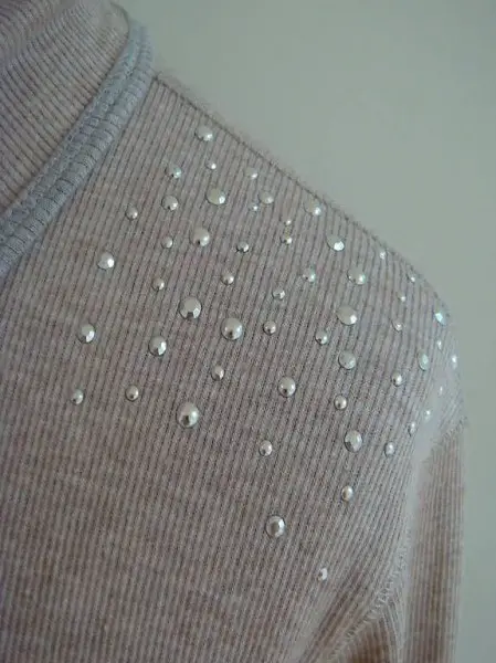 Auf der Schulter mit silberfarbenen funkelnden Strasssteinen