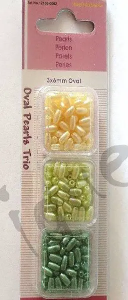 1 Blister Wachsperlen Oliven (Reiskorn) gelb / grün 3 x 6mm