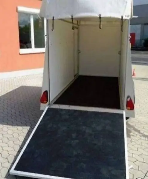 Einachser. Kugelkupplung, Auflaufbremse, Achsen und V-Deichselrahmen verzinkt. Alurahmen eloxiert, Stützrad verstärkt, Heckrampe mit rutschfestem Gummi und Hebedämpfern.