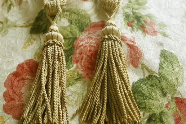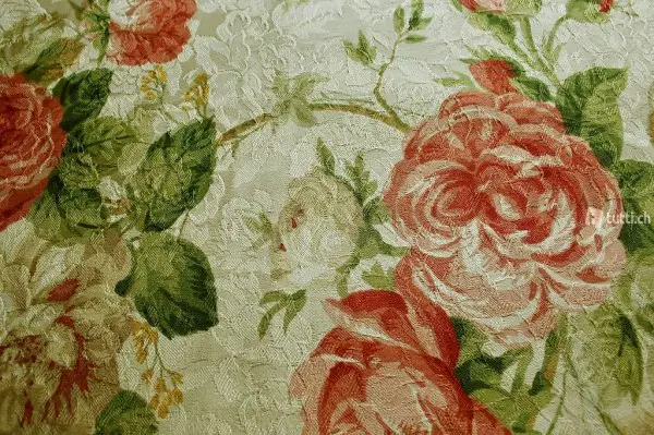 Hochwertiges Vorhangpaar aus wunderschönem gewobenem Rosenmusterstoff (RICHLOOM).