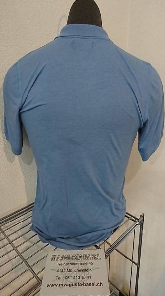 Im Angebot sind drei MV Agusta Poloshirts der Farbe rot (2 Stück der Grösse M) und hellblau (1 Stück der Grösse S). Sie sind alle originalverpackt und dementsprechend fabrikneu. Es sind schlichte klassische Poloshirts mit dem Markenemblem auf der linken Brust und einem Italokreis auf dem rechten Ärmel.
