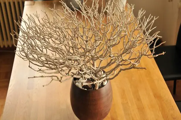 Echter Naturast als Deko mit Topf und Dekosteine