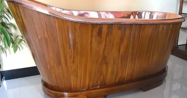 Diese Wanne wird von Hand aus Teak Holz in Bali gefertigt
