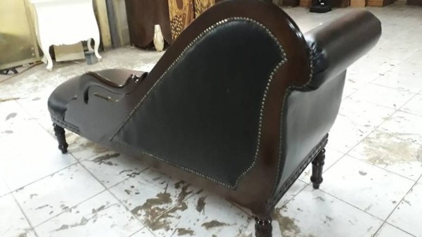 dieses Hochwertige Sofa wurde in Handarbeit aus Mahagoni Holz mit Schwarzem Leder gefertigt.