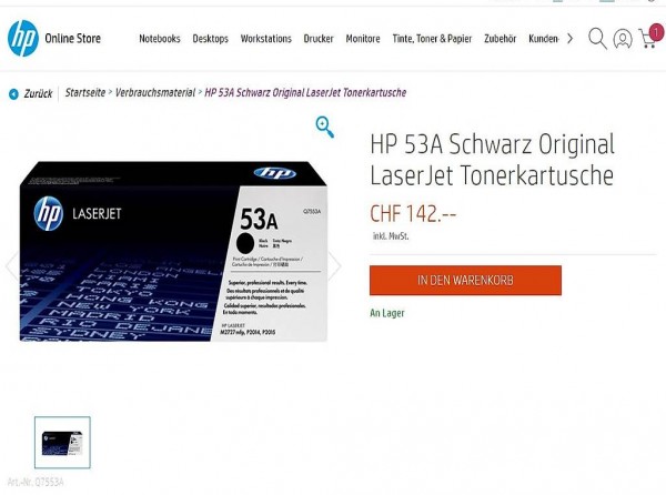 HP Art.-Nr.: 53A, Q7553A. Ladenpreis: Fr. 142,00.