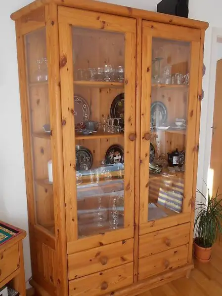 Wunderschöne Trapezvitrine aus Kiefernholz (massiv) gelaugt und geölt.
