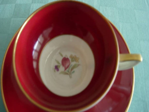 rot, Goldrand mit Blumenmotiv