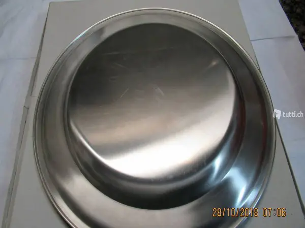 Chromstahlplatte, rund neuwertig, in Originalschachtel