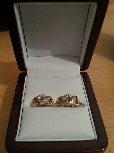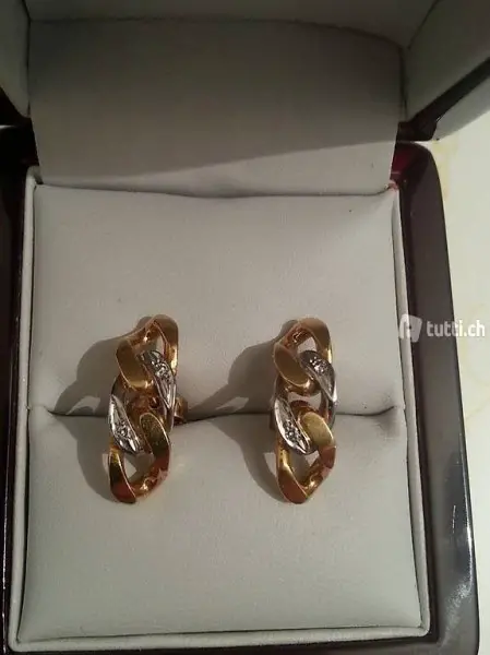 Orecchini in orogiallo con oro bianco e con picc diamantini. ottimo stato,quasi nuovi indossati un paio di volte chf 999.-