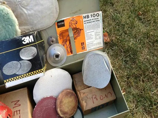 dans sa caisse matériel acconpagnant la polisseuse