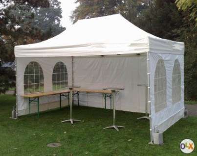 Vermietung verschiedener Schnellzelte, Faltzelte, Ecotent, Protent. Einfaches und schnelles Aufstellen mit dem kompakten Alugestell. Verschiedene Grössen von 2,5x2,5m bis 4 x 8m. Sie können verschiedene Zelte aneinander bauen und mit Regenrinnen verbinden.