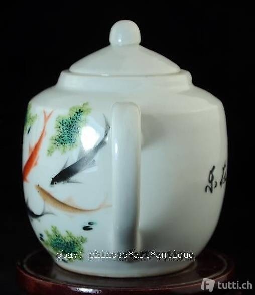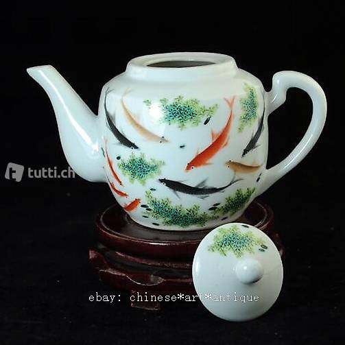 China Teekanne Porzellan Motiv Goldfische Bodenmarke