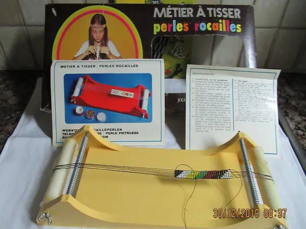 Webstuhl zum Perlen weben, und ein Buch mit Vorlagen