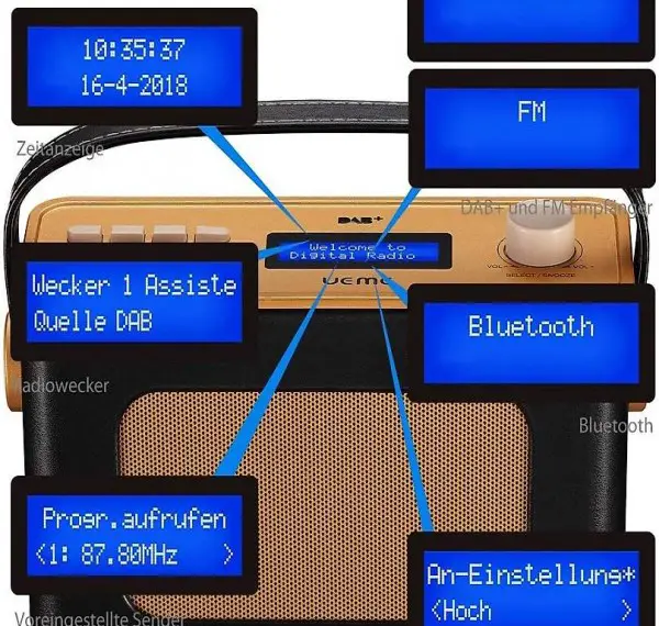 DAB+/DAB und FM RDS RADIOS - Einfache Bedienung und ausgezeichnete Empfangsqualität; Antenne ausziehbar. Geniessen Sie alle Programme von verfügbaren Digital Audio Broadcasting und UKW Sender, z.B. NDR 2, WDR2, RockAntenne usw. Einfacher Zugriff auf Ihre Lieblingssender dank je 10 voreingestellter DAB+/DAB und FM-Sender