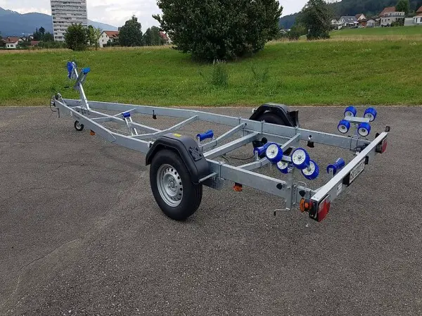 Transportanhänger für Boote. Wasserdichte Radlager. Die Basis bildet ein starkes und stabiles geschweisstes Fahrgestell.
