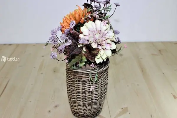 Korb (Kirschenlese) mit Trockenblumenarrangement