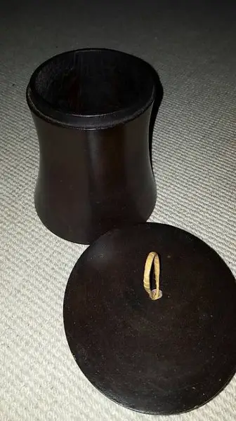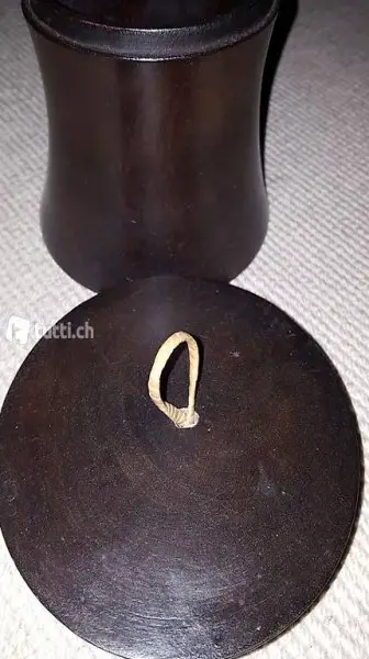 Holzdose aus Indonesien. ca. 13cm hoch + 13 cm Durchmesser mit Deckel.