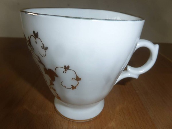 Eine Tasse (d=9,5 cm) mit "Goldrand", "Goldverzierung" und Spruch ?Ich gratuliere?