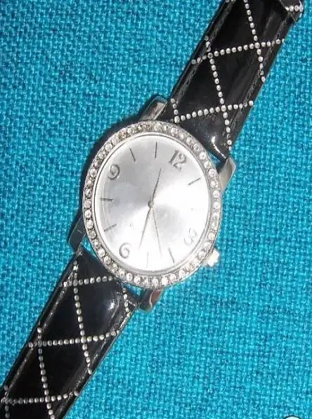 Silber / schwarz mit weissen Steinchen rund um die Lünette