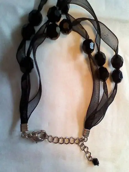 Armband mit passendem Ohr-Hänger, schwarzes Stoffband mit schwarzen