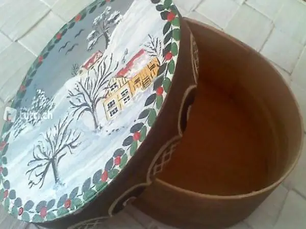 Span-Schachtel handbemalt, oval, ca 95x120mm, guter Zustand