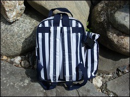 Petit sac à dos isotherme bleu et blanc en synthétique, neuf.