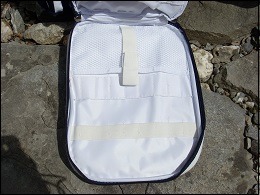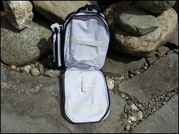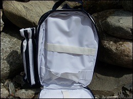 Avec 1 grande poche, une autre poche pour mettre de petites choses ainsi qu'une poche isotherme pour mettre une petite bouteille, que l'on peut enlever.