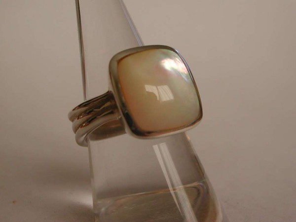 D : Silber Ring Fingerring mit Echt Perlmutter, Perlmutt