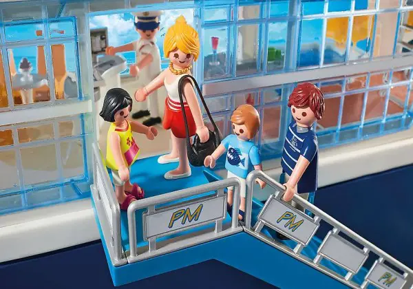 Rutsche vom Sonnendeck, Restaurantbereich und bespielbare Brücke mit abnehmbarem Dach. Mit Gangway und schwimmfähigem Rettungsboot.