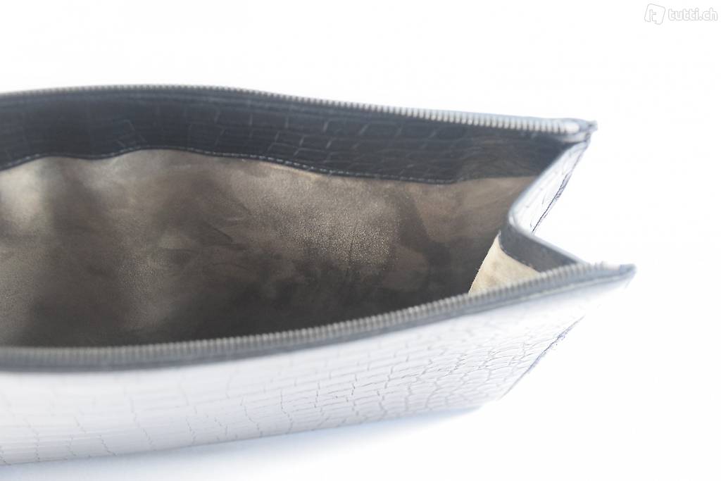 Bottega Veneta Dokumententsche in Krokodilleder, A4 Format passt hinein, mit Reissverschluss und Klipp-Verschluss, Innenleder Velour (Lamm) Neuwertig, CITES Dokument, Original
