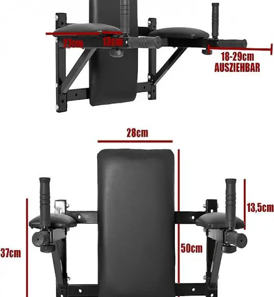 HIGHLIGHTS - verschiedene Griffmöglichkeiten durch verstellbare horizontale und vertikale Griffe - Polsterung am Rücken und Unterarme für mehr Komfort - extrem stabiles Stahlgestell ? hohe Belastbarkeit -leichte Befestigung an der Wand