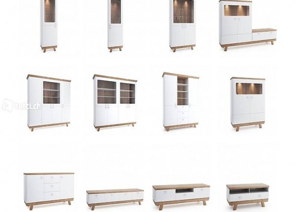 Rückwand & Einlegeböden: MDF (Mitteldichte Holzfaserplatte), furniert & lackiert