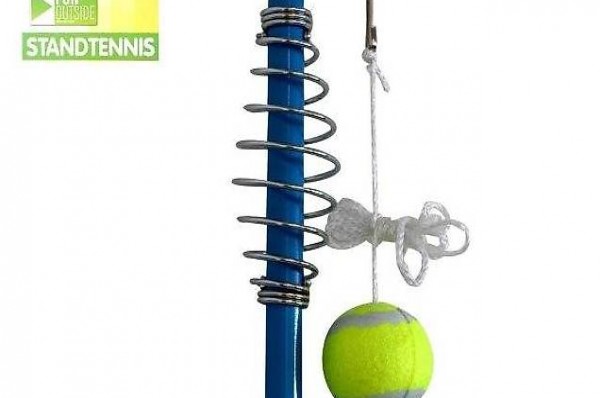 Standtennis- Set mit stabiler Metallstange, Nylonschnur, Tennisball und 2 Tennisschlägern Dieses Outdoor Standtennis- Set garantiert Spielspass pur. Es besteht aus zwei stabilen Metallstangen, einem Tennisball an einer robusten Nylonschnur sowie 2 Tennisschlägern. Die Metallstangen werden ineinander gesteckt und können an jedem beliebigen Ort in die Erde getreten werden um einen stabilen Halt zu gewähren. Ob zu Hause im Garten, im Urlaub oder zur Beschäftigung beim Picknick im Park, der Spielspass ist für Jung und Alt garantiert.