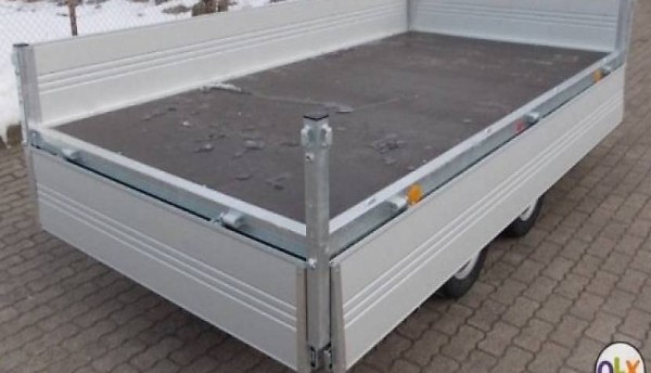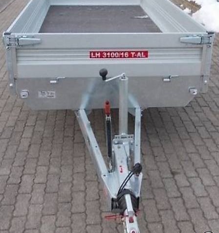 Hochladeranhänger mit Standardfahrwerk 14" oder Niederfahrwerk 13"(gegen Aufpreis). Gesamtgewicht 2700kg, Nutzlast ca. 2210kg, Innenlänge 310cm, Innenbreite 160cm, Innenhöhe 30cm. Stabiles, verschweisstes und feuerverzinktes Fahrgestell,