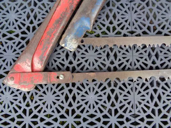 Alte, gebrauchte Sägen mit neuwertigen Sägeblättern.