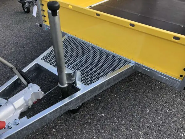 Massives verschweisstges und feuerverzinktes Fahrgestell, Tandemachser mit Gummifederachsen, Auflaufbremse mit Rückfahrautomatik, V-Deichsel mit Schaufelablage, 50mm Kugelkupplung, Kotflügel aus Riffelblech aufgenietet, automatisches Stützrad.