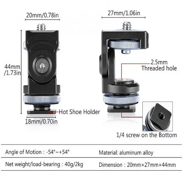 Mit kaltem Schuhhalter kann der Artikel an den meisten DSLR-Kameras montiert werden. Mit standardmässiger 1/4 Zoll-Schrauboberseite zur Montage von