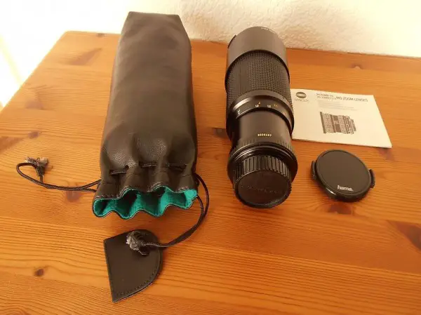 Das Teleobjektiv wurde selten gebraucht und ist in neuwertigem Zustand. Es passte zu unserer
