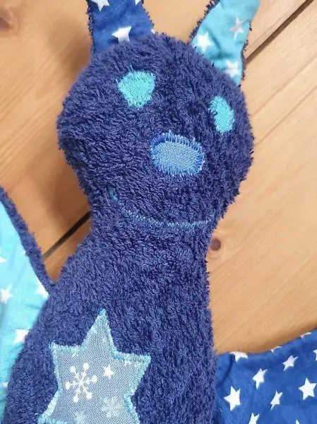 liebevoll selbstgenähte Fledermaus zum Spielen für die Kleinen, die Beine knistern, im Bauch hat es ein Drücker der quitscht, extra mit haptisch versch. Textilien genäht, tierfreier Nichtraucherhaushalt, habe viele Inserate online